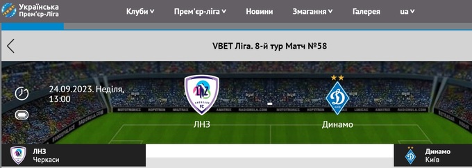 Матч 8 туру УПЛ «ЛНЗ» (Черкаси) – «Динамо» (Київ) відбудеться 23 вересня на стадіоні «Черкаси-Арена». Початок заплановано на 13:00.
