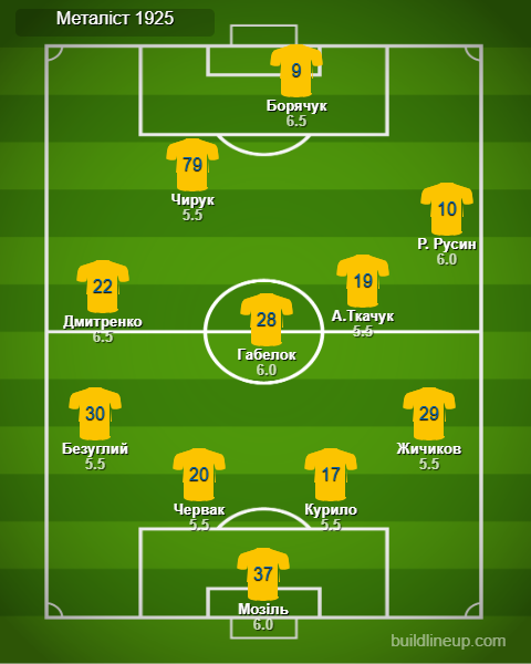 «Металіст 1925»: Мозіль, Жичиков, Курило, Червак, Безуглий, Габелок, Р. Русин (Арі, 69), А. Ткачук (Фарина, 69), Чирук (Ігор, 79), Дмитренко, Борячук (Вачіберадзе, 59).
