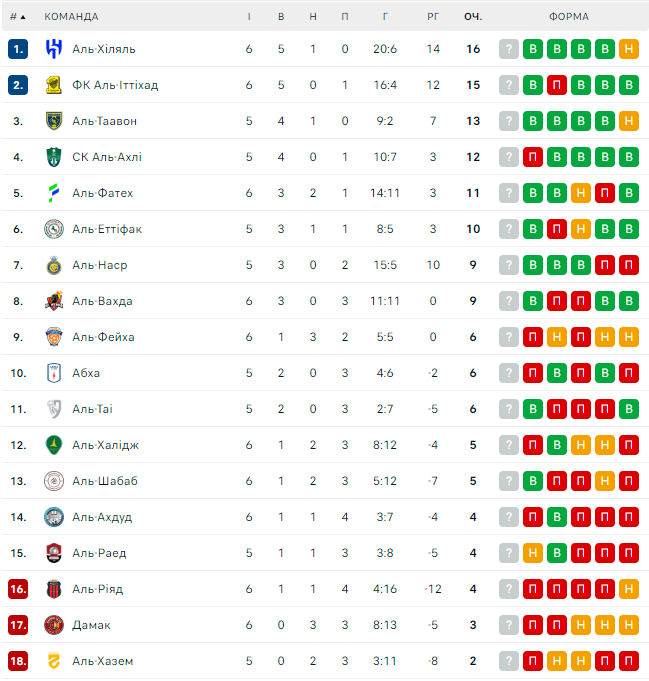 Аль-Хіляль розгромив Аль-Ріяд з рахунком 6:1 і повернув собі лідерство (16 очок із 18).