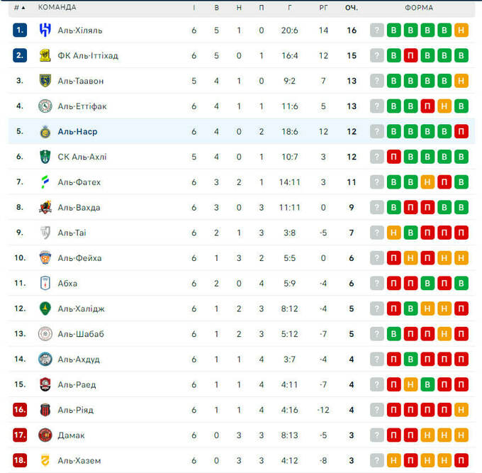 Чемпіонат Саудівської Аравії. 6-й тур. 16 вересня