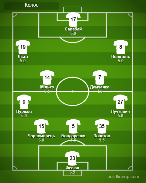 «Колос»: Фесюн, Бондаренко, Чорноморець, Золотов, Цуріков, Лучкевич, Мілько, Демченко, Велетень (Мякушко, 70), Дієго (Болбат, 75), Салабай (Безбородько, 75, Попов, 90+4).