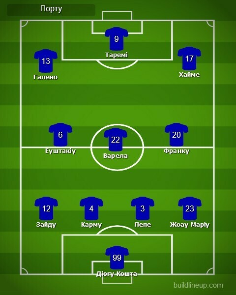 «Порту»: Діогу Кошта, Жоау Маріу (Санчес, 73), Пепе, Карму, Еуштакіу, Зайду (Венделл, 46), Хайме (Гонсалес, 73), Франку (Боржеш, 82), Варела, Галено (Консейсау, 91), Таремі
