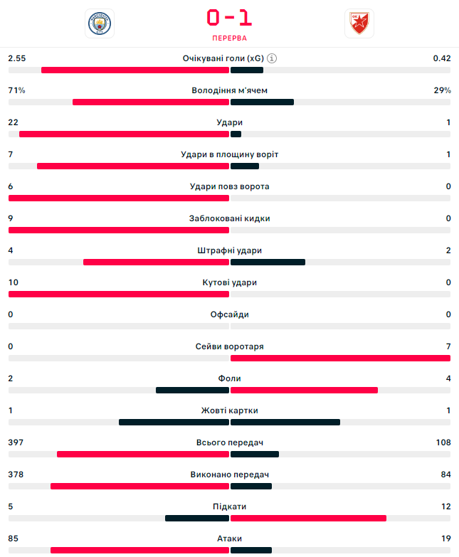 Ман Сіті за величезної переваги поступається Црвені Звезді після 1-го тайму