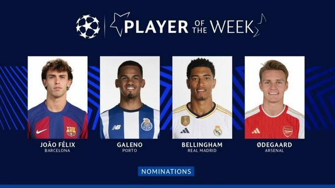 Європейський футбольний союз назвав імена чотирьох футболістів, які претендують на титул найкращого гравця першого туру групової стадії Ліги чемпіонів сезону-2023/2024.