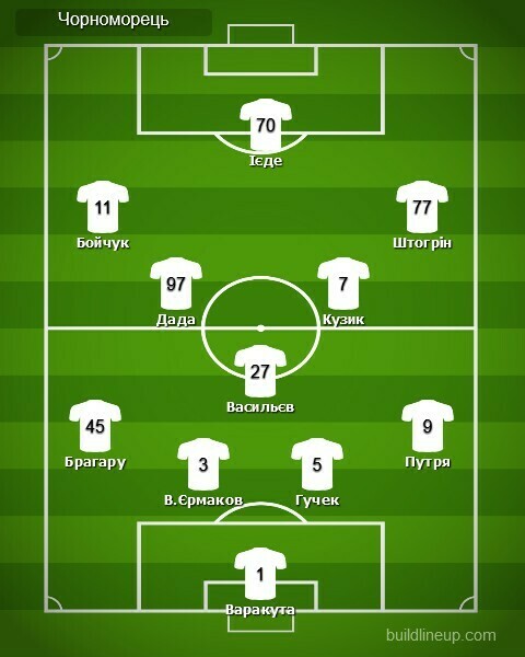 «Чорноморець»: Варакута, В.Єрмаков, Гучек, Путря (Ухань, 84), Брагару, Васильєв (Салюк, 84), Кузик, Дада (Хадіда, 74), Штогрін (Бадібанга, 69), Ієде, Бойчук (Вакула, 74)