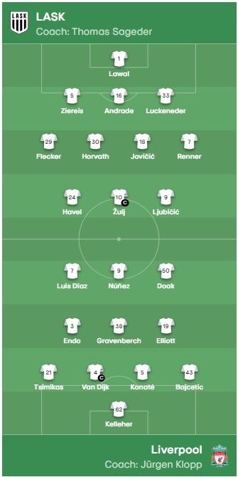 «Ліверпуль»: Келлехер – Байчетіч, Конате, ван Дейк, Цимікас – Елліотт, Гравенберх, Ендо – Доак, Нуньєс, Діас.