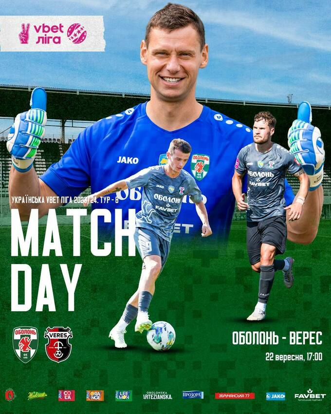 У п'ятницю, 22 вересня, київська «Оболонь» та рівненський «Верес» зустрінуться у матчі восьмого туру Української Прем'єр-ліги. Поєдинок відбудеться у Києві, на стадіоні «Оболонь-Арена». Початок призначено на 17:00.