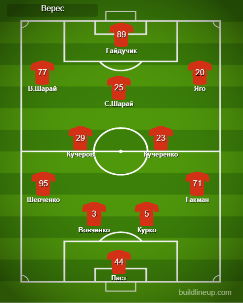 «Верес»: Паст, Вовченко, Курко, Шевченко, Гакман, Кучеренко (Балан, 78), Яго (Шестаков, 66), С. Шарай (Марусич, 46), Кучеров, В. Шарай (Світюха, 90), Гайдучик (Кухарук, 78).