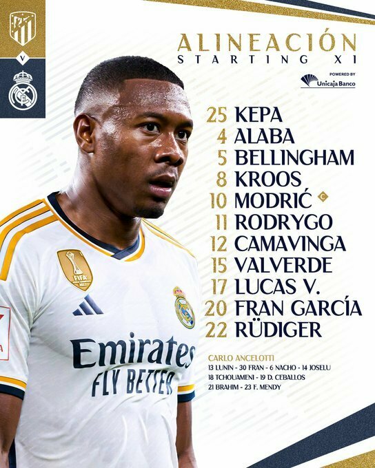 «Реал»: Аррісабалага – Фран Гарсія (Менді, 57), Алаба, Рюдігер, Л. Васкес (Начо, 57) – Камавінга (Чуамені, 56), Кроос (Діас, 70), Вальверде – Беллінгем, Модрич (Хоселу, 46) – Родріго.