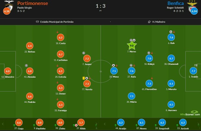 Це друга найвища оцінка серед гравців столичної команди. Найвищу, 9,0 балів, отримав півзахисник Давид Нерес. Найкращим у складі «Портімоненсе» став форвард Еліо Варела, який отримав 7.3 бали.