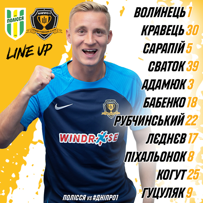 "Полісся" гратиме у чорній формі, "Дніпро-1" - у жовтій.