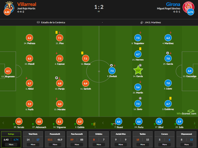 Довбик та Циганков отримали високі оцінки за матч Жирони з Вільярреалом