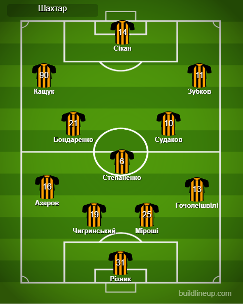 «Шахтар»: Різник, Степаненко (Назарина, 63), Чигринський (Ракіцький, 46), Азаров (Келсі, 82), Міроші, Бондаренко, Гочолеішвілі, Зубков, Кащук (Швед, 70), Судаков (Криськів, 63) Сікан.