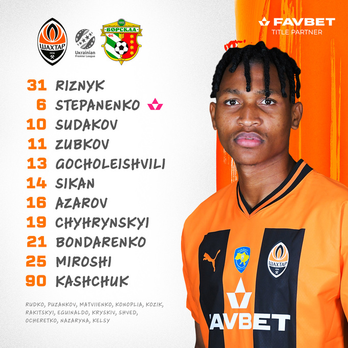 Запасні: Рудько, Пузанков, Егіналду, Швед, Матвієнко, Конопля, Очеретько, Козік.