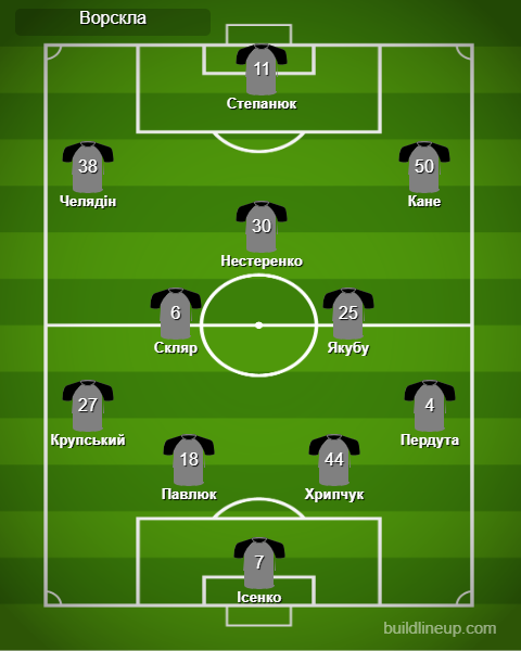 «Ворскла»: Ісенко, Пердута, Скляр, Крупський, Степанюк, Павлюк, Якубу (Черниш, 79), Нестеренко, Челядін, Кане, Хрипчук.