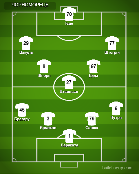 «Чорноморець»: Варакута - Путря, Єрмаков, Малюк, Брагару - Васильєв, Штогрін (Хадіда, 81), Дада (Авагімян, 69), Шпорн, Вакула (Бойчук, 69) - Ієде (Бадібанга, 60).