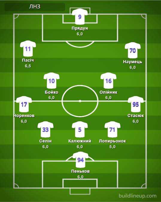 ЛНЗ: Пеньков – Норенков, Селін, Калюжний, Лопирьонок, Стасюк – Олійник, Бойко – Пасіч (Тарасенко, 90+5), Прядун, Наумець (С. Шестаков, 67).