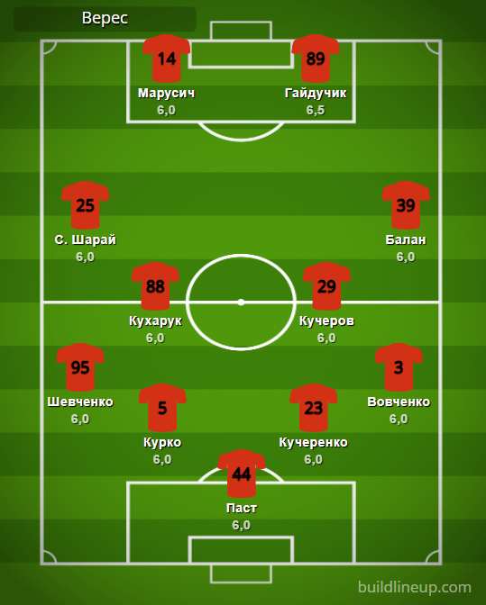 «Верес» (заміни): Гакман – 6,0, Яго – 6,0, Шарай – 6,0, Світюха – 6,0.