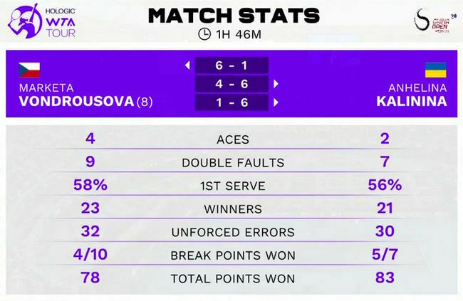 Ангеліна Калініна (Україна) – Маркета Вондроушова (Чехія) – 1:6, 6:4, 6:1