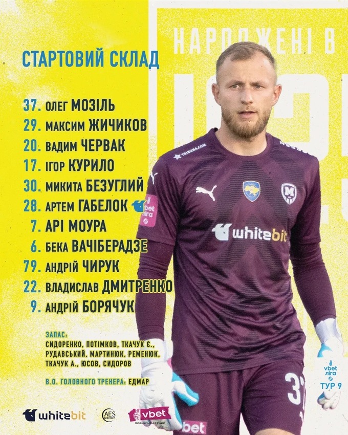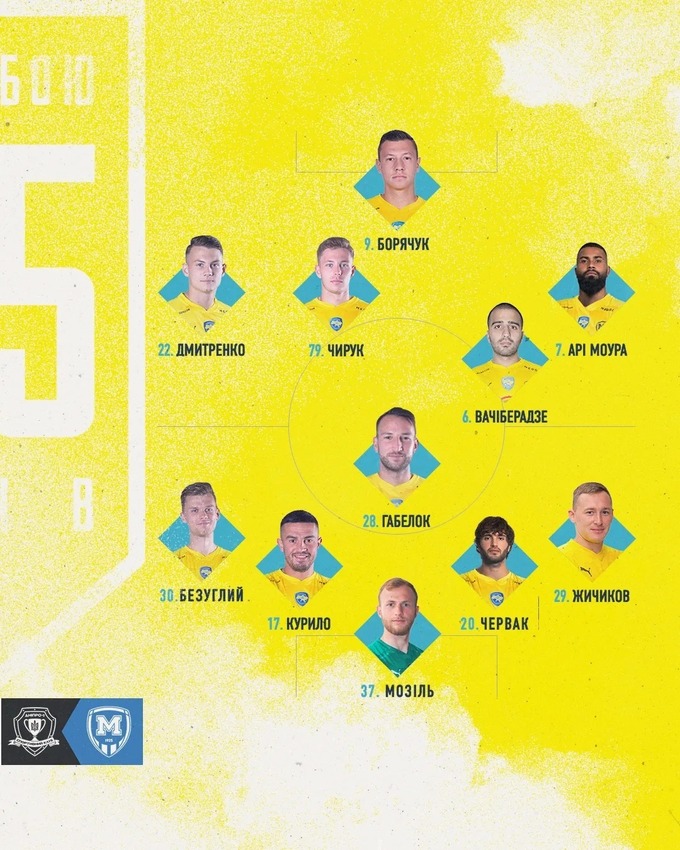 «Металіст 1925»: Мозіль – Червак, Курило, Безуглий, Жичиков – Габелок, Вачіберадзе – Дмитренко (Юсов, 65), Чирук (Сидоров, 65), Арі – Борячук.