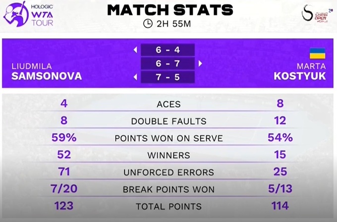 Марта Костюк (Україна) – Людмила Самсонова – 4:6, 7:6(4), 5:7