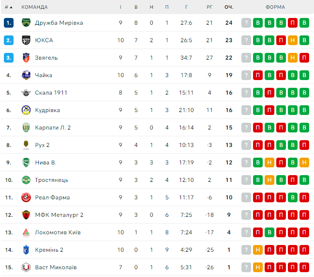Турнірна таблиця