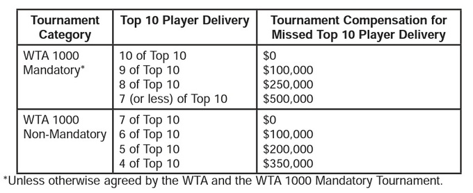 Згідно з офіційними правилами, WTA була змушена виплатити минулого тижня 350 тисяч доларів організаторам турніру в Гвадалахарі через те, що турнір пропустила більшість гравців першої десятки світового рейтингу.