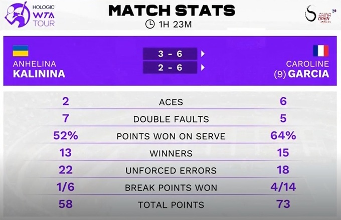 Ангеліна Калініна (Україна) – Каролін Гарсія (Франція) – 3:6, 2:6
