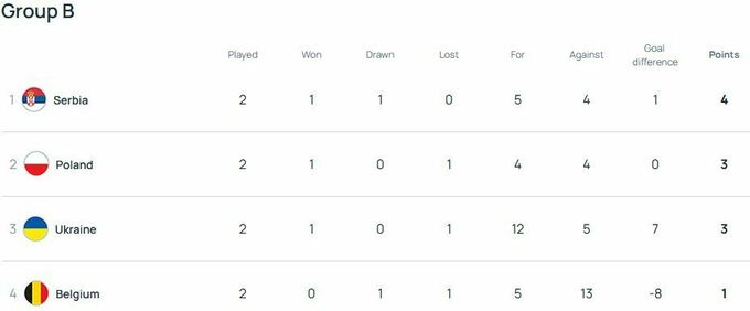«Синьо-жовті» розпочали еліт-раунд із феєричної гостьової перемоги над збірною Бельгії з рахунком 10:2, але потім поступилися команді Польщі – 2:3. Серби на виїзді обіграли поляків (2:1), а згодом на своєму майданчику зіграли внічию з бельгійцями (3:3). Нагадаємо, переможці груп еліт-раунду безпосередньо вийдуть до фінальної стадії ЧС-2024. Чотири найкращі володарі других місць зіграють у стикових матчах.