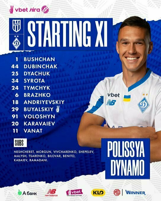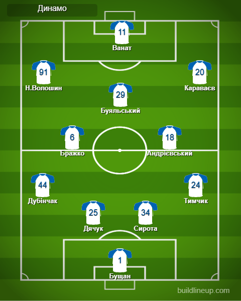 «Динамо»: Бущан, Тимчик (Беніто, 68), Дячук, Сирота, Дубінчак, Бражко, Андрієвський, Буяльський, Н.Волошин (Кабаєв, 68), Караваєв, Ванат.