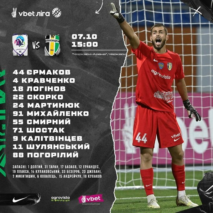 Запасні: Долгий, Ернандес, Андрейчук, Базаєв, Плакса, Безерра, Таран.