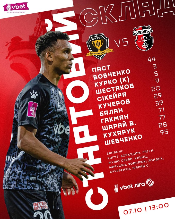 У суботу, 7-го жовтня, відбудеться поєдинок 10-го туру Української Прем'єр-ліги, у якому змагатимуться дніпровський «Дніпро-1» і рівненський «Верес». Матч відбудеться в Дніпрі, на полі стадіону «Дніпро-Арена», початок о 13:00.