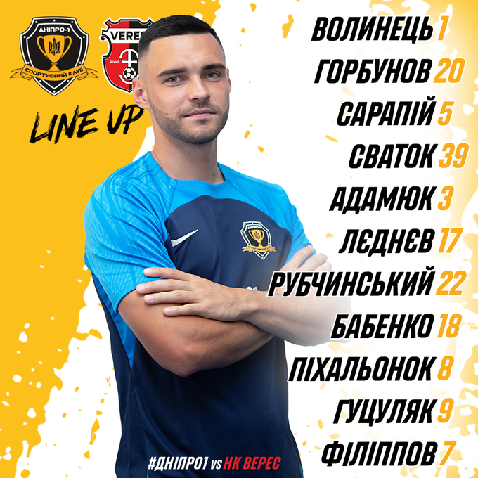 «Дніпро-1»: Волинець – Горбунов (Каплієнко, 60), Сарапій, Сваток, Адамюк – Бабенко – Лєднєв (Є. Пасіч, 61), Рубчинський, Піхальонок, Гуцуляк (Мірошніченко, 79) – Філіппов (Танчик, 61).