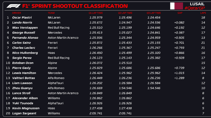 Відбулася кваліфікація перед спринтерською гонкою Гран-прі Катару. Заїзд виграв пілот Макларена Оскар Піастрі, який випередив свого партнера Ландо Норріса.