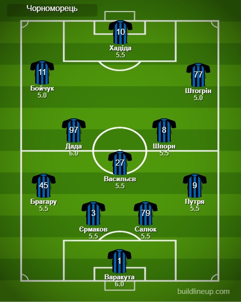 «Чорноморець»: Варакута, Єрмаков, Салюк, Путря, Брагару, Васильєв, Дада (Бадібанга, 77), Шпорн (Авагімян, 77), Штогрин, Хадіда (Ієде, 46), Бойчук (Вакула, 46).