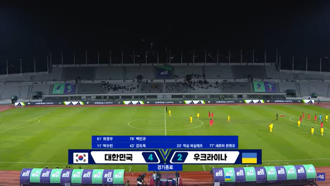 Другий тайм краще розпочали господарі, створили кілька гольових нагод, а на 62-й хвилині після помилки українців у власному штрафному збільшили власну перевагу. На 78-й хвилині «синьо-жовті» скоротили відставання — подачу Годі зі штрафного ударом головою завершив Панченко. Утім, корейці миттєво відповіли своєю результативною атакою.