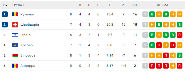 Румунія розгромила Андорру та вийшла у лідери групи. Швейцарія трохи позаду