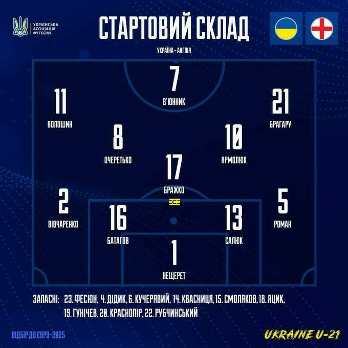 Молодіжна збірна України під керівництвом іспанського фахівця Унаї Мельгоси перші два матчі відбіркового турніру виграла у Північної Ірландії (1:0) та Люксембургу (3:0). Українська молодіжка нового скликання ще не пропускала голів у офіційних матчах.