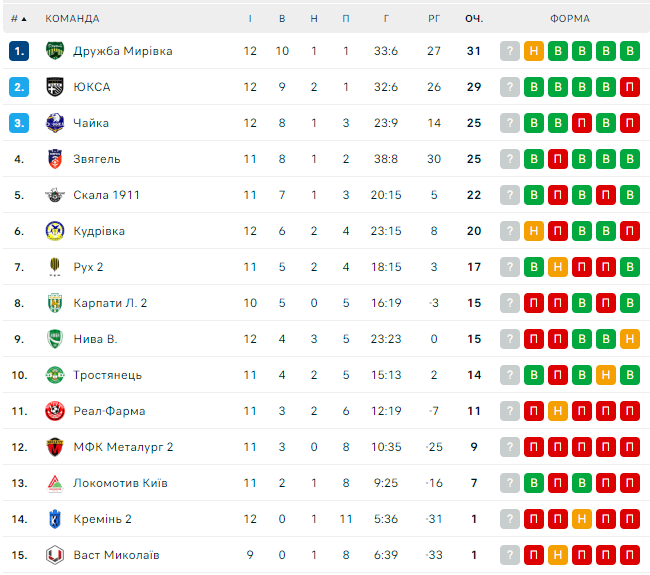 Турнірна таблиця