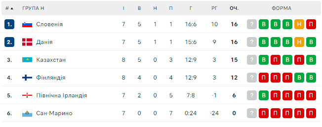 Казахстан набрав 15 очок, вийшов на 3-тє місце і зберігає шанси на вихід у фінальний раунд Євро-2023. Лідирують у групі Словенія та Данія (по 16).