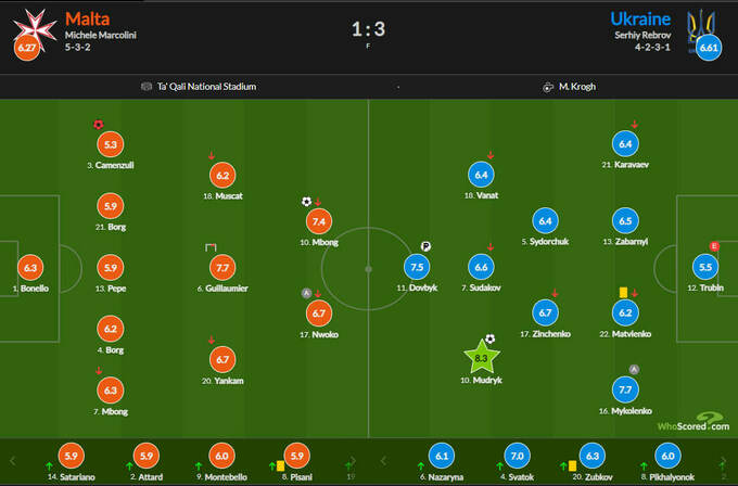 Оцінки WhoScored за матч Мальта – Україна – 1:3