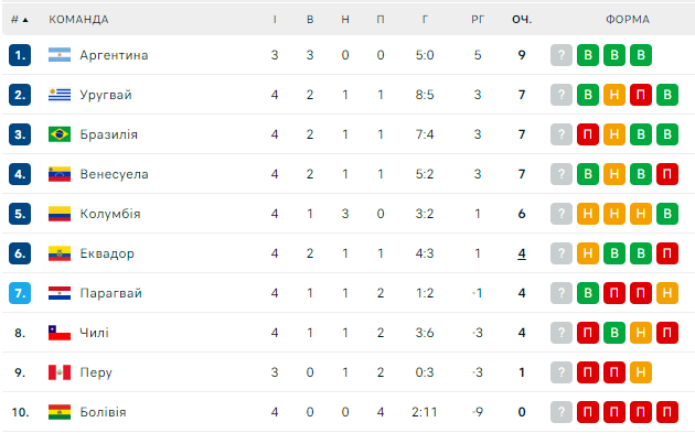 На ЧС від Південної Америки вийдуть 6 команд із 10, а ще одна – до плей-оф