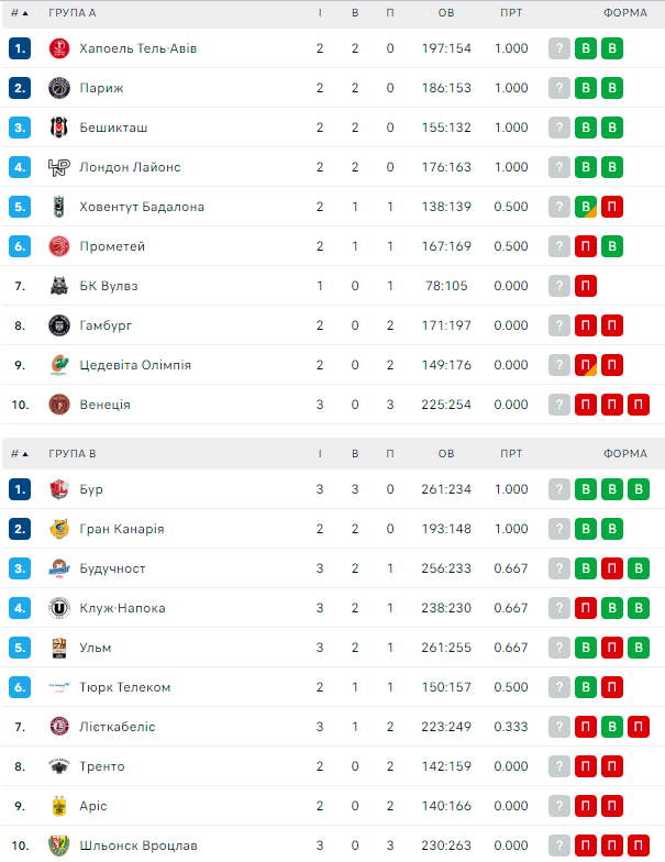 Турнірні таблиці