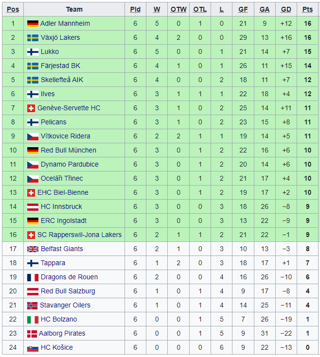 У хокейній Лізі чемпіонів завершився основний раунд (регулярний сезон).