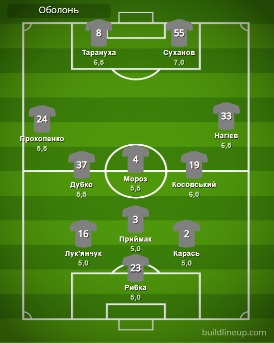 «Оболонь» (заміни): Краснопір – 6,0, Черненко – 6,0, Груша – б/о, Слободян – б/о.