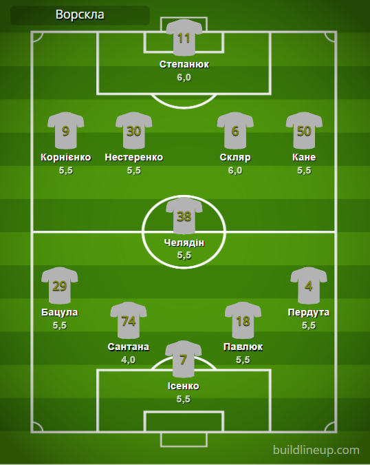 «Ворскла»: Ісенко – Бацула, Сантана (Хрипчук, 63), Павлюк, Пердута – Челядін – Корнієнко (Феліпе, 63), Нестеренко (Черниш, 78), Скляр, Кане – Степанюк.