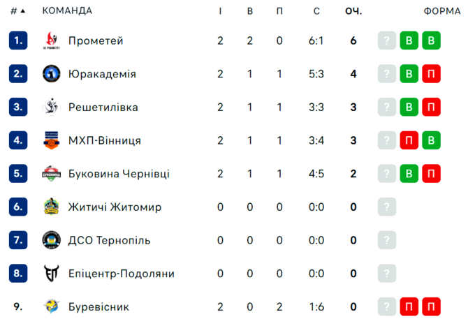 Турнірне становище команд зараз таке: