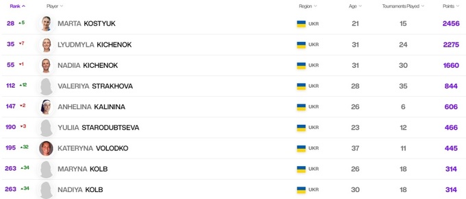 Українки в рейтингу WTA