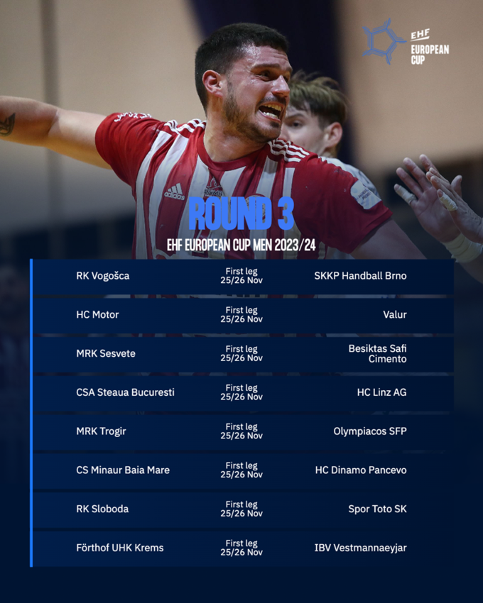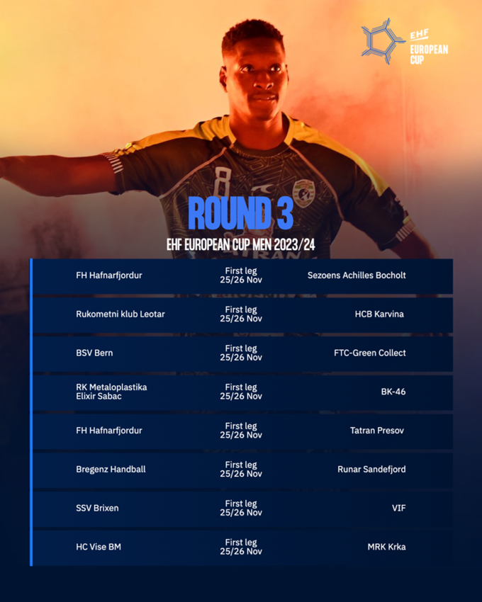 Перші зустрічі третього раунду Європейського кубка EHF відбудуться у суботу та неділю, 25-26 листопада, а матчі-відповіді – також у суботу та неділю 2-3 грудня.