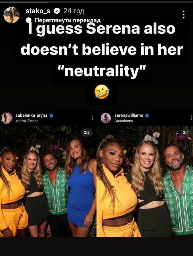 «Думаю, Серена також не вірить у її «нейтральність», – написав Стаховський в інстаграмі.